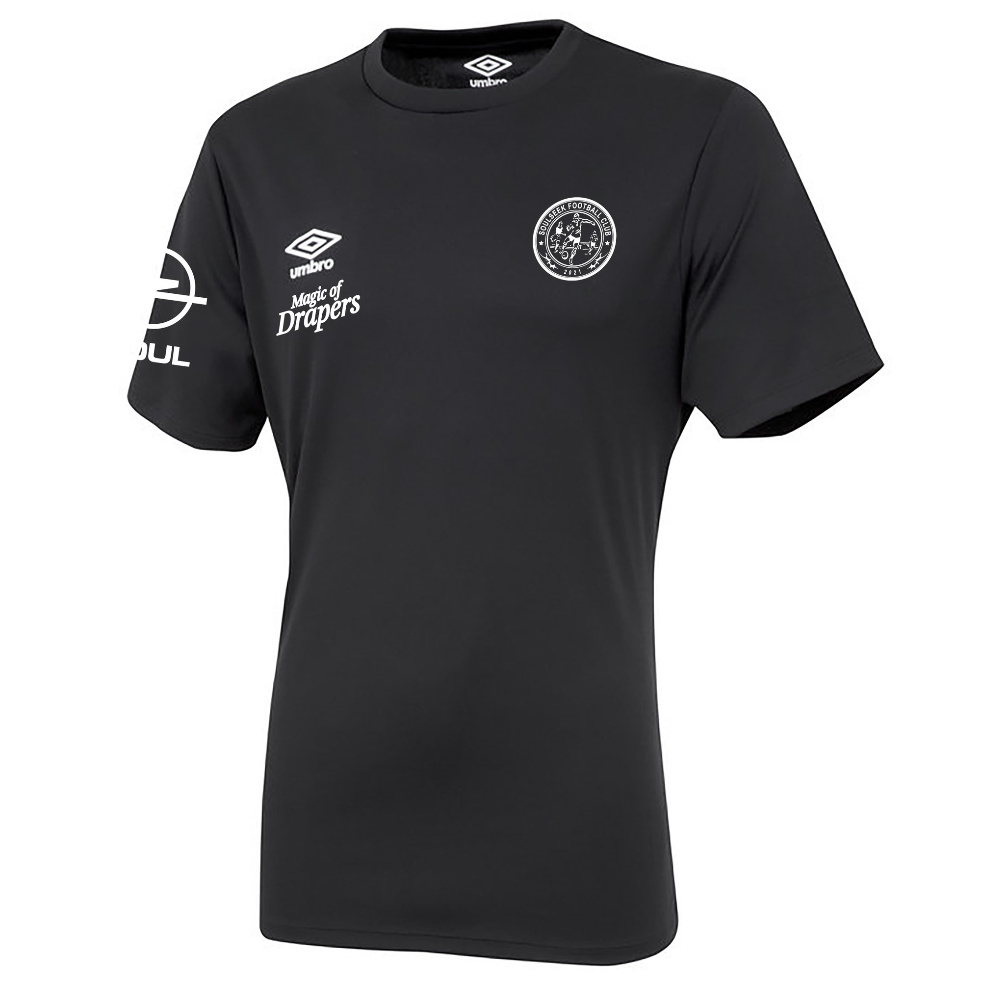 Soulseek FC Embroidered logo on front, 'Magic of Drapers' print below Umbro logo, SOUL logo on right arm.